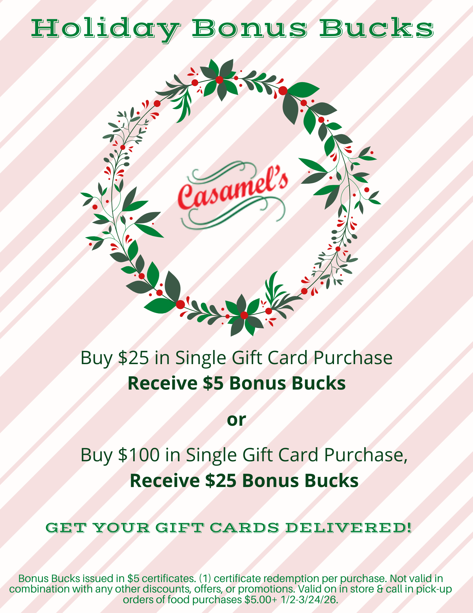 Considered a staple of Italian cuisine, pizza at Casamel’s is as authentic as pierogis are to Parma.